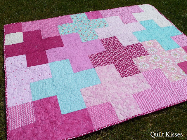 I recently found out that one of my husband's cousins was diagnosed with cancer. I wanted to make her a quilt, so I asked her what her favorite color was. Turns out she loves pink! I wanted to finish it before she starts chemo therapy, so I picked one of my favorite easy patterns.